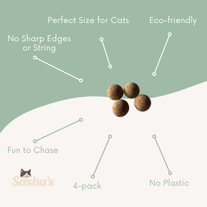 Give your cat hours of healthy play with this 4-pack of natural cork balls — lightweight, eco-friendly, and perfect for chasing, batting, and pouncing!