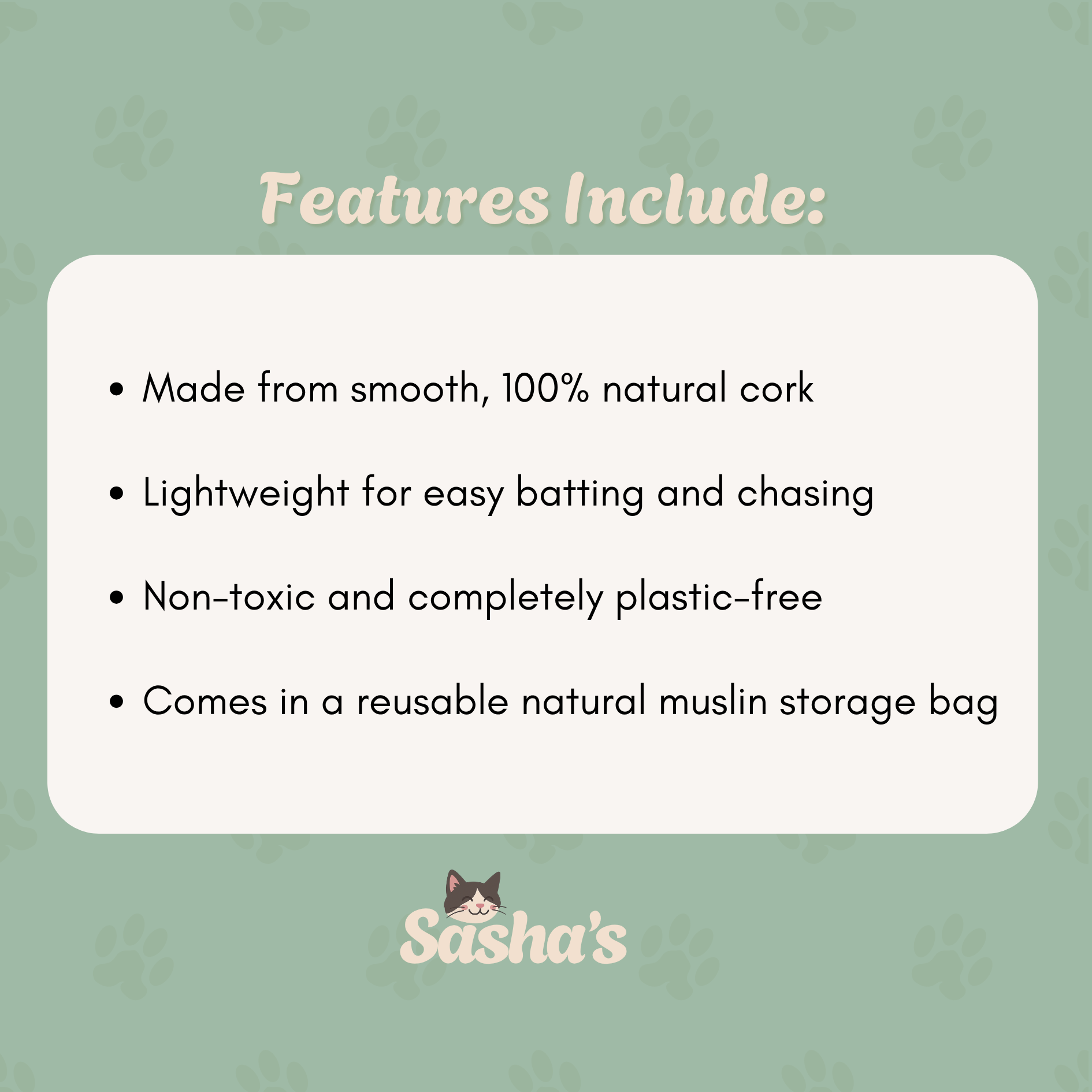 These non-toxic, chemical-free cork balls mimic real prey movement, encouraging your cat’s natural hunting instincts while keeping them active and happy. The soft yet durable cork is gentle on paws, teeth, and furniture.