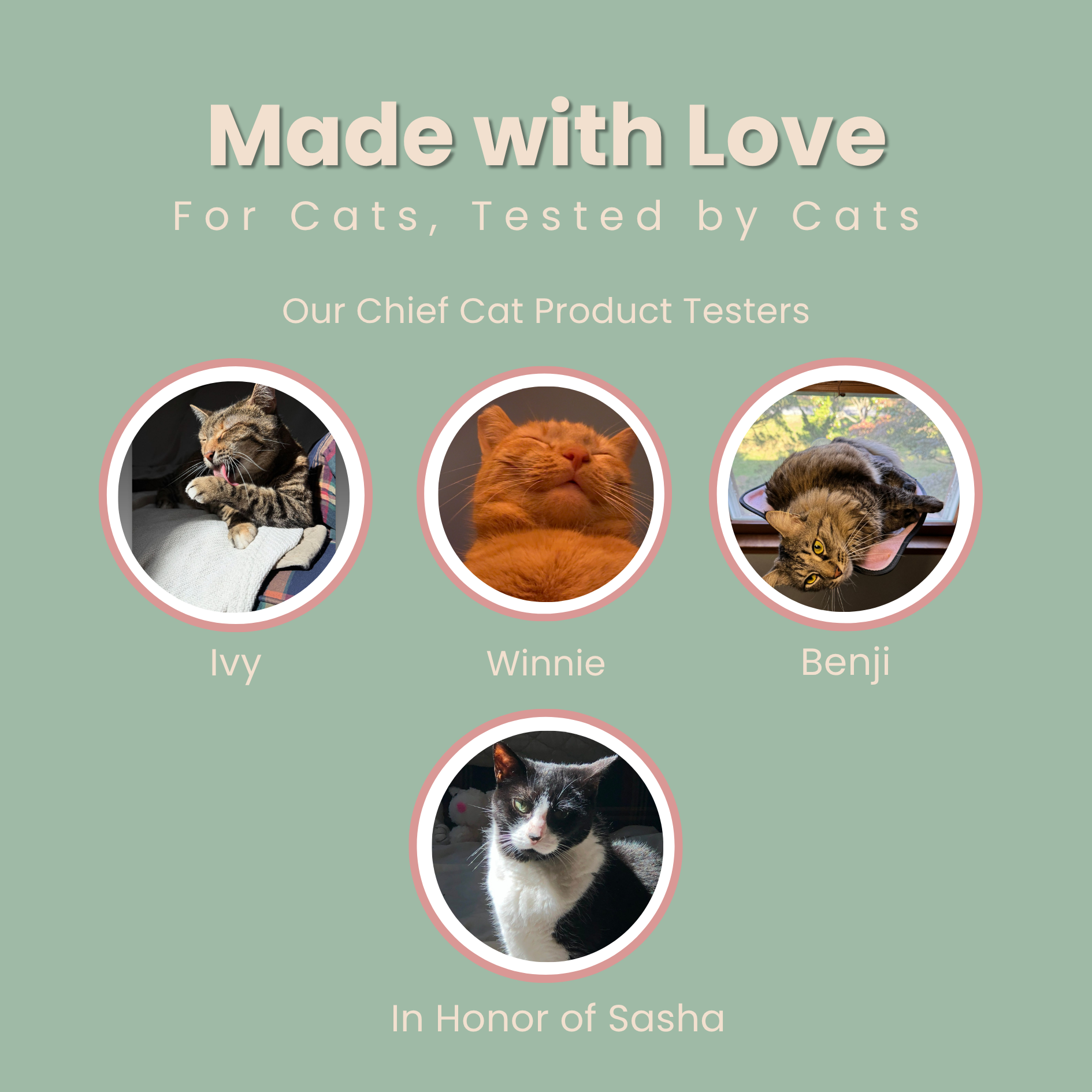 Sasha’s is a labor of love born from the memory of our beloved family cat, Sasha. After 16 years with Sasha, we wanted to create something meaningful in her honor—something that would celebrate the love and happiness pets bring to our lives. So we set out to craft toys that reflect that same warmth, joy, and care.