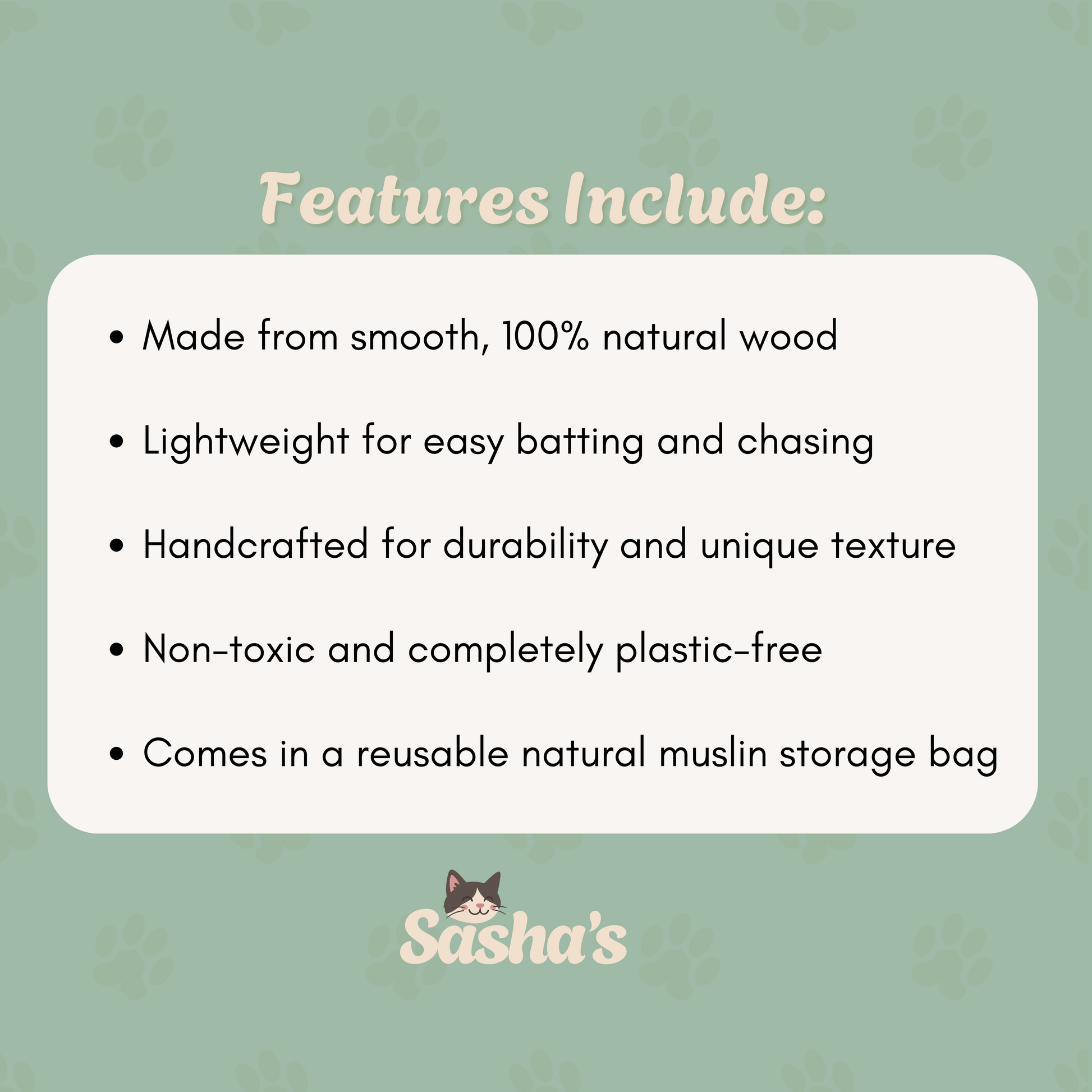 These natural wooden balls are the perfect eco-friendly addition to your cat's playtime! Made from renewable and non-toxic materials, they're designed to provide safe, natural fun while aligning with our commitment to sustainability.