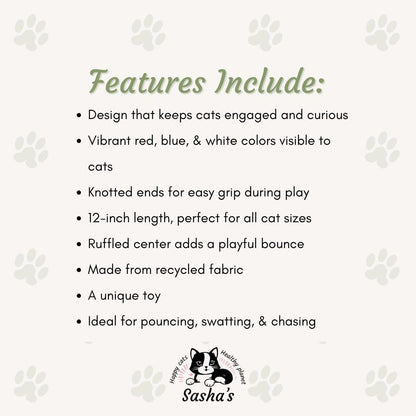 🌈 Visible Colors – Designed in red, blue, and white, colors that are highly visible to cats for better engagement & focus during playtime.